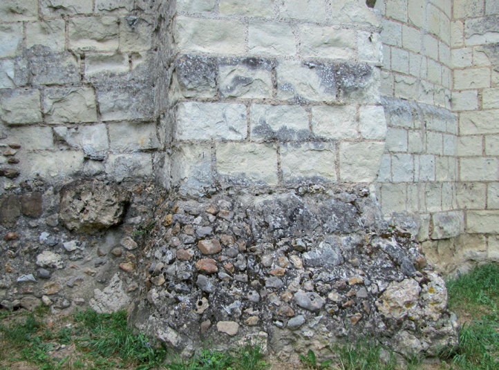 La roche présente les caractères d’un tuffeau : calcaire crayeux, sableux, plus ou moins riche en bioclastes selon les niveaux. Des grains de glauconie et quelques grains de quartz et paillettes de mica blanc sont visibles à la loupe. Les silex, disposés en bancs ou épars, sont abondants.